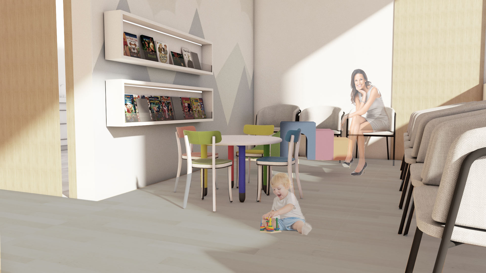 El diseño se basa en líneas limpias, materiales sostenibles y una paleta de colores neutros que transmiten calma y confianza. Grandes ventanales permiten el ingreso de luz natural, reduciendo el uso de iluminación artificial y generando una atmósfera saludable.