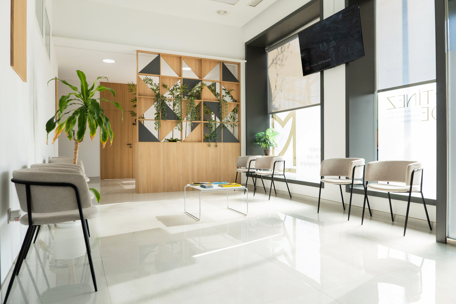 La distribución interior favorece la privacidad de los pacientes y la eficiencia operativa del personal. Se emplean sistemas de climatización y ventilación de alta eficiencia energética. La sala de espera está pensada como un espacio cómodo y relajante, con mobiliario ergonómico y tecnología de entretenimiento. Cada gabinete dental está equipado con tecnología de última generación.